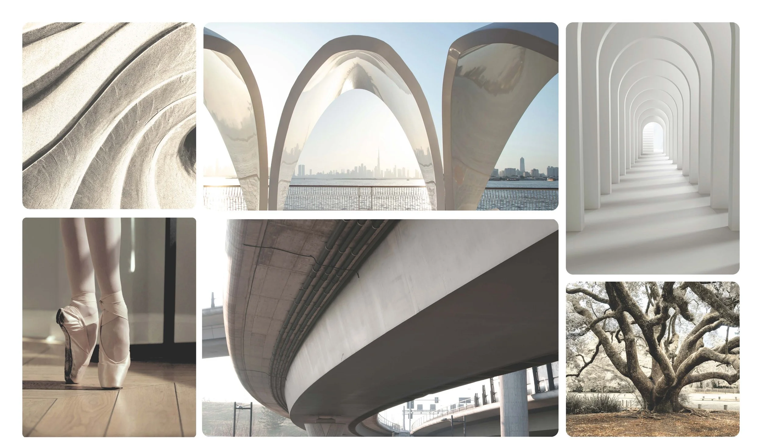 This moodboard captures strength and grace. Curved concrete forms meet the elegance of ballet, blending structure, balance, and effortless poise.